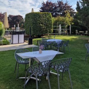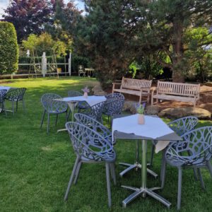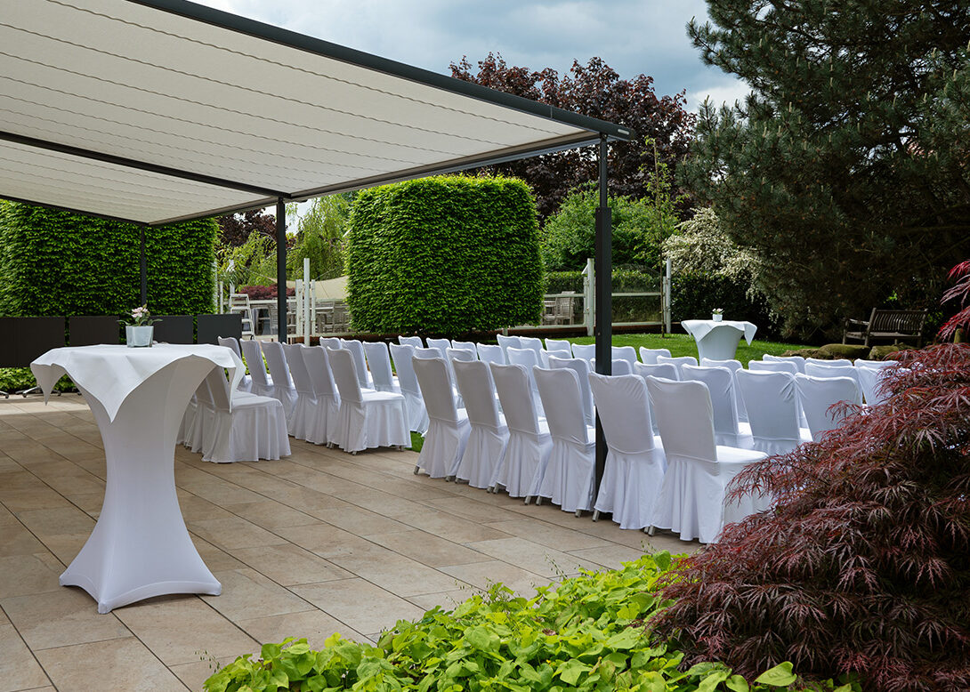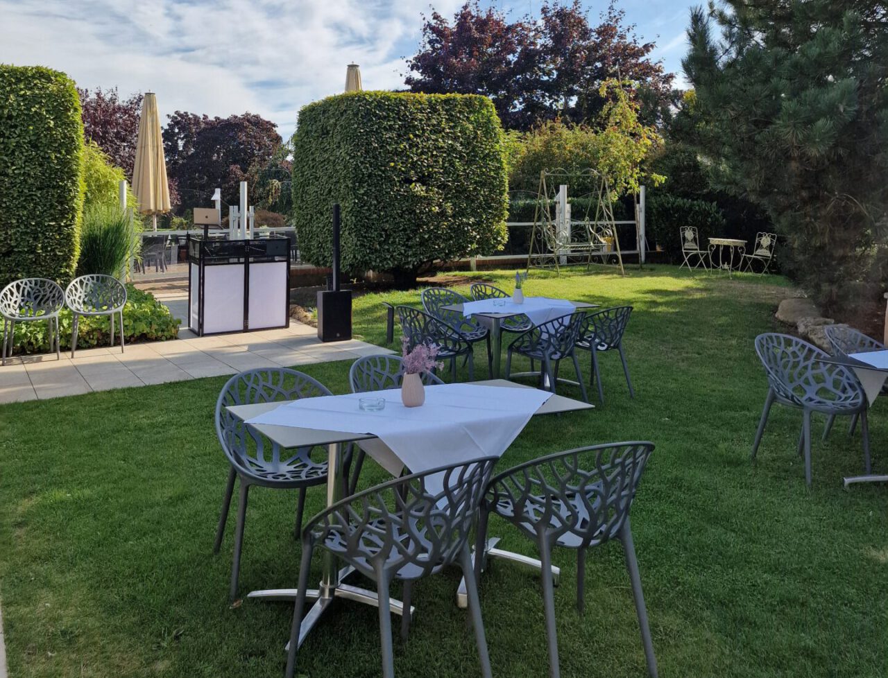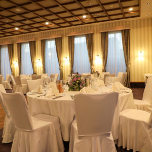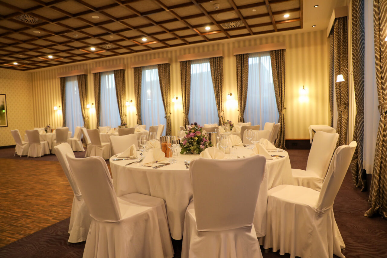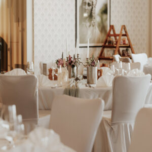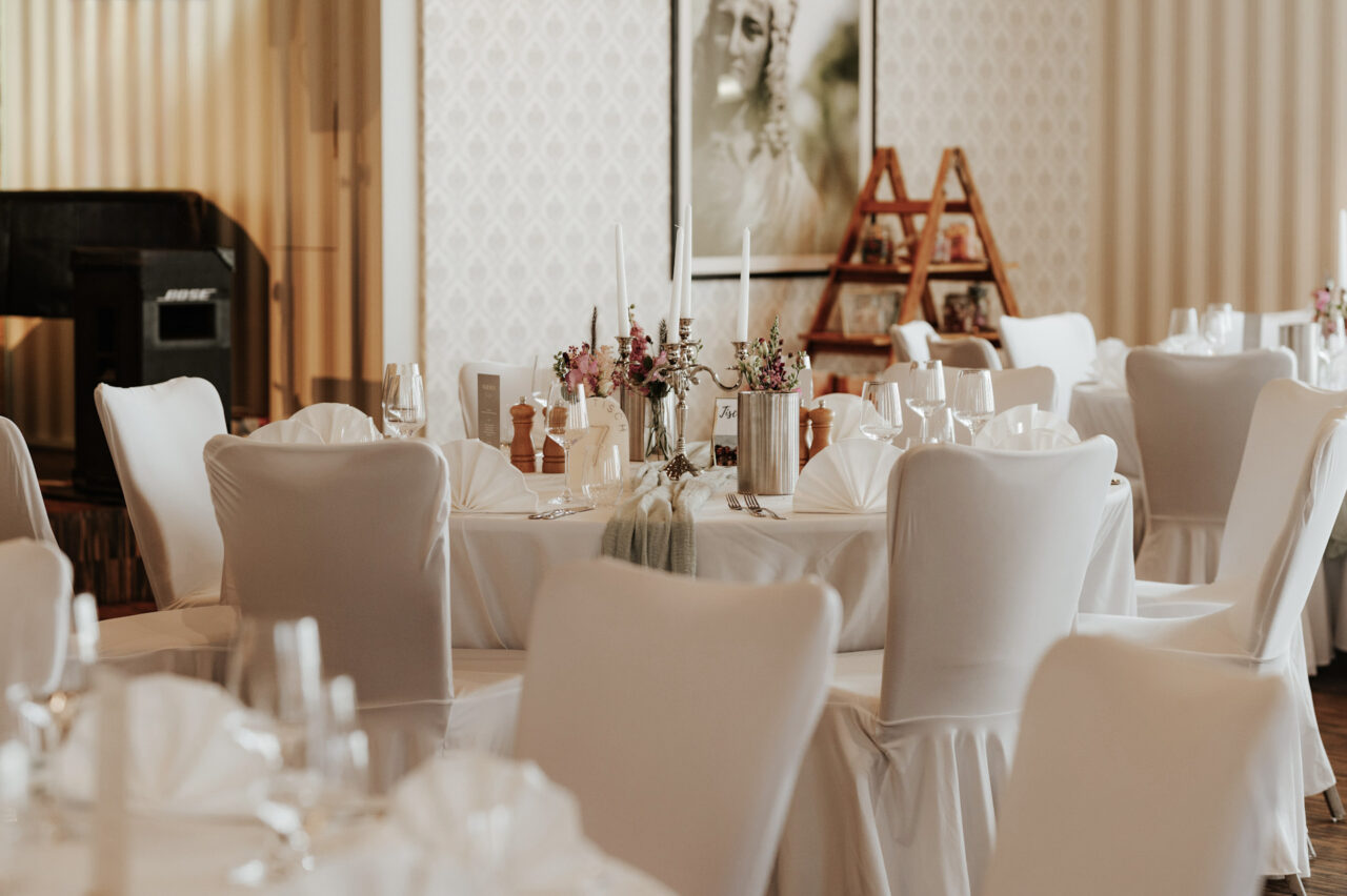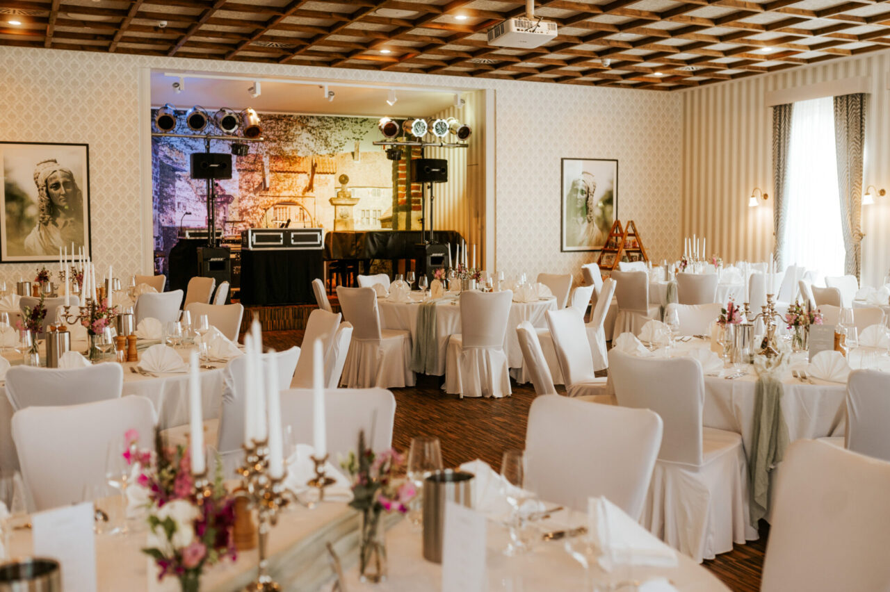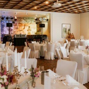 Die alten Holzbalken und der Holzfußboden geben dem Reitstall ein rustikales und zugleich edles Ambiente. Erleben Sie hier gemütliche, inspirierende und fröhliche Stunden. Der Raum liegt in einem anschließenden Nebengebäude des Hotels, hat sogar einen eigenen Thekenbereich und einen direkten Ausgang nach draußen.